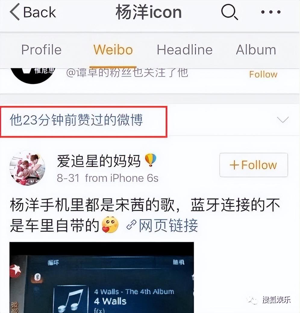 2016年,有网友爆出杨洋点赞了一个粉丝的微博,微博内容是关于宋茜的。但是杨洋点完赞之后又随即取消了,很可能是手滑了。