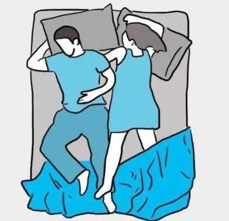 7、占据式 如果你的另一半平时总想要把整个床占完,只留给你一点空间,你就要想想,他的性格是不是就是这样。因为这样的睡姿说明你们的关系已经失去了平衡,说明Ta通常比较自私。建议你们坐到一块好好聊聊。