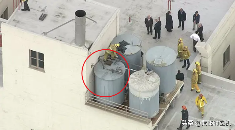 人们在酒店顶楼水箱里,