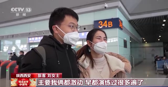 旅客 刘女士:主要我俩都激动。早都演练过很多遍了,一直也都拖着呢。平时我俩没事在家演练时,我说没事我一点儿都不怕。但是今天,我刚踏进车站的时候,我就不行了,我现在腿都有点软。